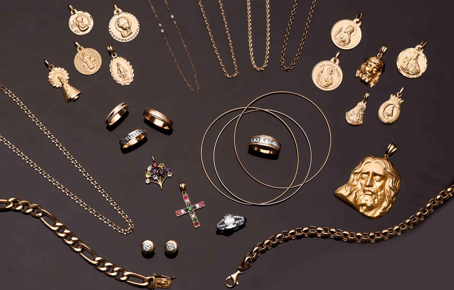 Ponemos a tu disposición un amplio catálogo en el que encontrarás una enorme variedad de joyas fabricadas en oro amarillo, oro blanco, oro bicolor u oro tricolor, joyas exclusivas diseñadas y fabricadas en Córdoba, cuna de la joyería en oro de España, conocida también internacionalmente. Somos especialistas en la fabricación de joyas de oro de 18 kilates y joyas de oro de 9 kilates. Encontrarás piezas de joyería que van desde medallas y cruces religiosas, pasando por tornillería infantil, esclavas, pulseras, sellos, solitarios, pendientes, alianzas, cadenas, joyas personalizadas, etc. Todo a tu disposición.