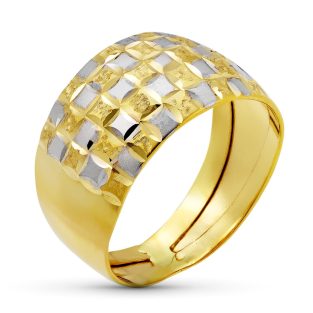 18K SORTIJA ORO BICOLOR DAMERO TALLADA ANCHO 13 MM