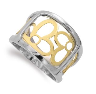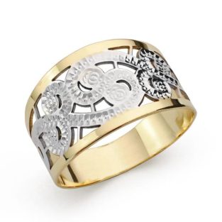 18K SORTIJA ORO BICOLOR MOTIVOS CALADOS ANCHO 14 MM