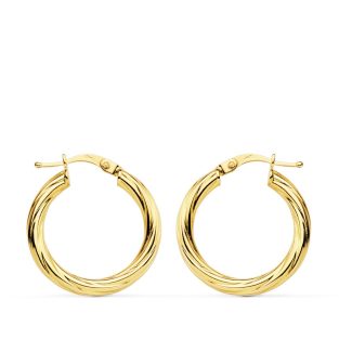 18K AROS ORO AMARILLO BRILLO RETORCIDOS 22X3 MM