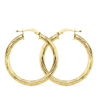 18K AROS ORO AMARILLO BRILLO RETORCIDOS 30X2.5 MM