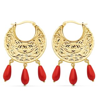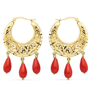 Pendientes de Oro y Coral de Mujer, en Oro de Ley de 18 Kilates.