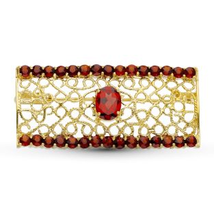 18K BROCHE ORO AMARILLO RECTANGULO GRANATE 43X20 MM