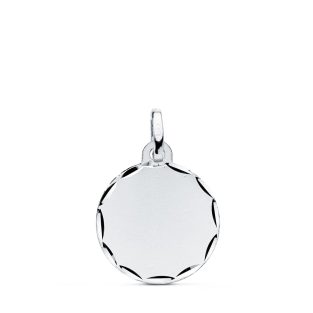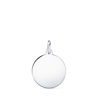 9K COLGANTE ORO BLANCO DISCO PARA GRABAR EN BRILLO 16 MM