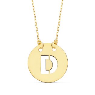 18K COLGANTE LETRA » D » 15 MM CADENA FORZADA 42 CM
