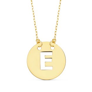 18K COLGANTE LETRA » E » 15 MM CADENA FORZADA 42 CM