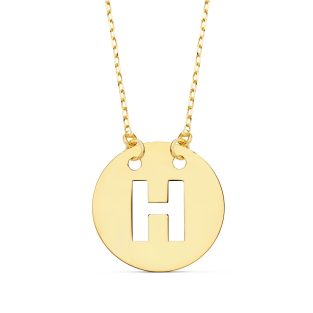18K COLGANTE LETRA » H » 15 MM CADENA FORZADA 42 CM
