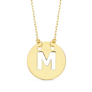 18K COLGANTE LETRA » M » 15 MM CADENA FORZADA 42 CM