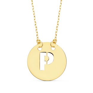 18K COLGANTE LETRA » P » 15 MM CADENA FORZADA 42 CM