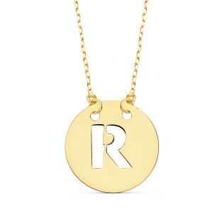 18K COLGANTE LETRA » R » 15 MM CADENA FORZADA 42 CM