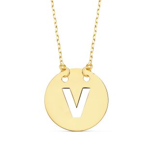 18K COLGANTE LETRA » V » 15 MM CADENA FORZADA 42 CM