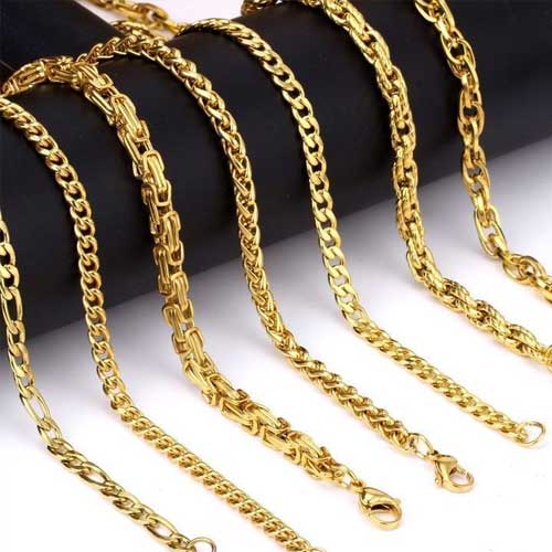 Cadenas Barbadas, Bilbao, Cartier, Forzada, Singapur, Cordones y Calabrotes de Oro de Ley de 18 Kilates.