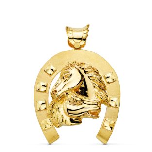 18K COLGANTE ORO AMARILLO HERRADURA CON CABALLOS 50X44 MM