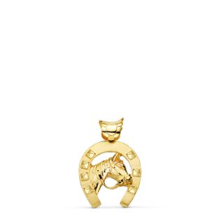 18K COLGANTE ORO AMARILLO HERRADURA CON CABALLO 29X27 MM