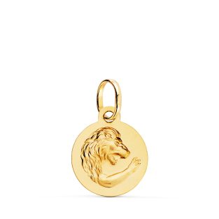 18K COLGANTE ORO AMARILLO HOROSCOPO LEO EN FRANCES BRILLO 16 MM