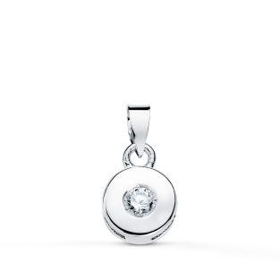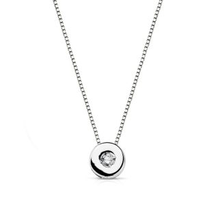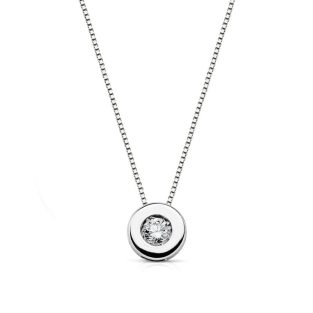 18K COLGANTE ORO BLANCO CHATON 5.5 MM DIAMANTE TALLA BRILLANTE 0.05 QTS SI-H