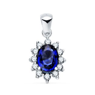 18K COLGANTE O.BLANCO ZAFIRO 1.63 QT. 14 DIAMANTES 0.42 QTS. SI-H. 11X9 MM