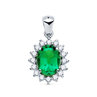 18K COLGANTE O.BLANCO ESMERALDA 0.39 QT. 14 DIAMANTES 0.14 QTS. SI-H. 10X8 MM