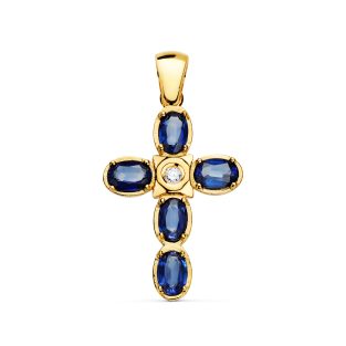 18K CRUZ ORO AMARILLO DIAMANTE 0.045 QTS. ZAFIROS DIFUSION 6X4 MM 3.10 QTS. 30X19 MM