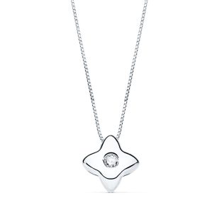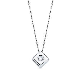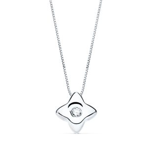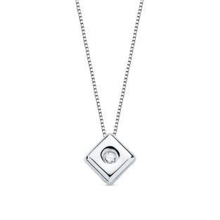 18K GARGANTILLA ORO BLANCO ROMBO DIAMANTE 0.050 QTS. G-VS2. CADENA 42 CM
