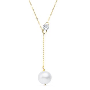 18K GARGANTILLA PERLA 12 MM CADENA 45 CM CHATON DIAMANTE 0.020 QTS G-VS2