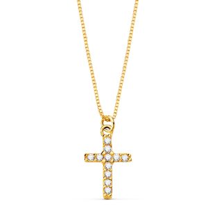 18K GARGANTILLA CRUZ 16X8.5MM1 DIAMANTE 0.015QT.CADENA VENECIANA 45CM G-VS2
