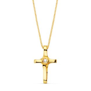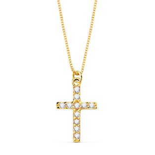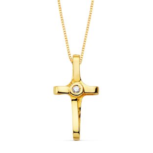 18K GARGANTILLA CRUZ 8X5MM 1 DIAMANTE 0.015QT. CADENA VENECIANA 45CM G-VS2