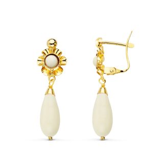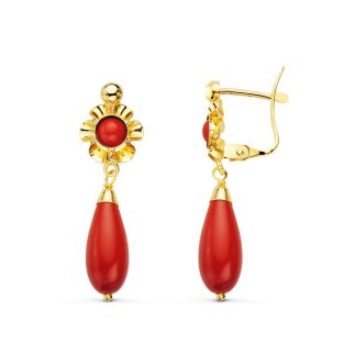 18K PENDIENTES ORO AMARILLO LAGRIMA CORAL CAMAFEO