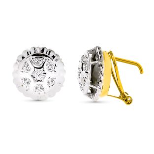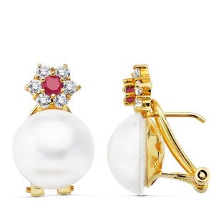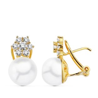 18K PENDIENTES ORO AMARILLO MADRE Y CIRCONITAS 15X14 MM CIERRE CATALAN