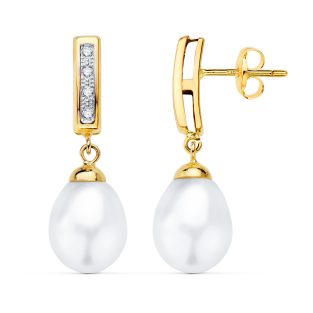 18K COLGANTE ORO AMARILLO PERLA JAPONESA PERA Y CIRCONITAS
