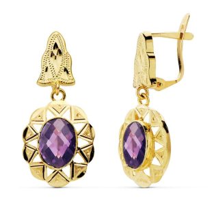 18K PENDIENTES ORO AMARILLO CUBANAS CON AMATISTA 23X9 MM CIERRE CATALAN