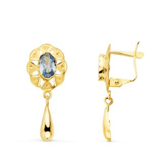 18K PENDIENTES CUBANAS PIEDRA OVAL 10X8 MM LAGRIMAS