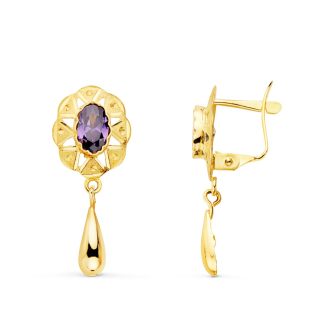18K PENDIENTES CUBANAS PIEDRA OVAL 8X6 MM AMATISTA