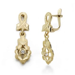 18K PENDIENTES DOS CUERPOS CIGARRON TALLADO CON CIRCONITAS 31X10 MM CATALAN