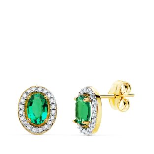 18K PENDIENTES ORO AMARILLO OVAL ESMERALDA 0.98 QT. 6X4 MM CIERRE DE PRESION.