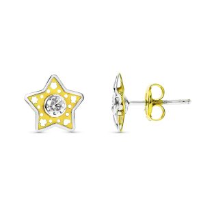 18K PENDIENTES ORO BICOLOR COMUNION ESTRELLA