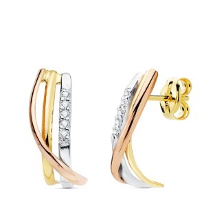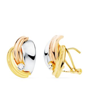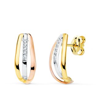 18K PENDIENTES BANDAS TRICOLOR CIRCONITAS 15X6 MM