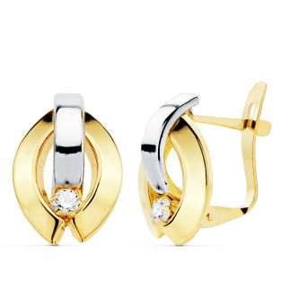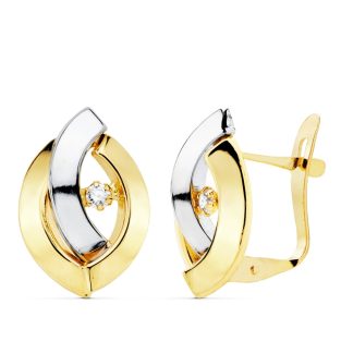 18K PENDIENTES BICOLOR CIRCONITAS 13X7 MM