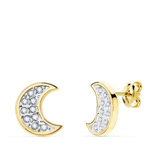 18K PENDIENTES ORO BICOLOR LUNA CON CIRCONITAS 11X9 MM CIERRE PRESION.