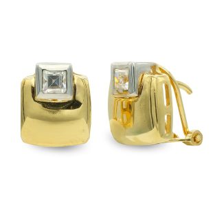 18K PENDIENTES ORO BICOLOR CUADRADO CON CIRCONITAS