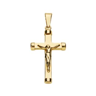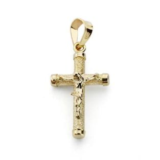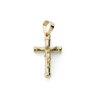 9K CRUZ ORO AMARILLO TUBO CON CRISTO. 31X16 MM