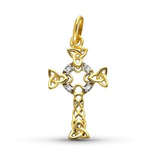 9K CRUZ ORO BICOLOR CELTA CON CIRCONITAS 18 X 12 MM