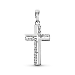 9K CRUZ ORO BLANCO CON CIRCONITAS 22X12 MM