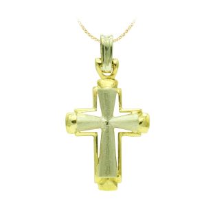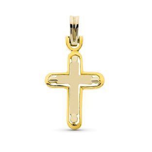 18K CRUZ ORO BICOLOR HUECA MATE Y BRILLO 21X13MM