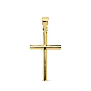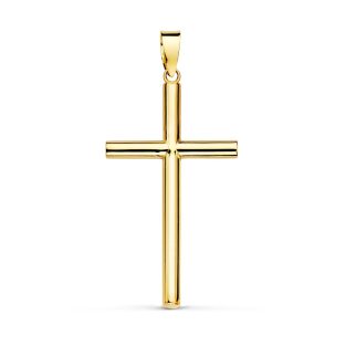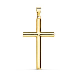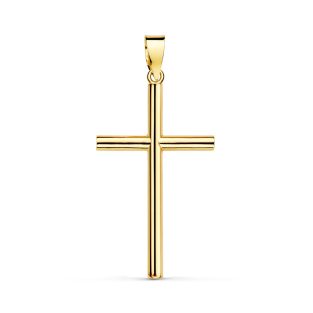 18K CRUZ ORO AMARILLO LISA TUBO HUECO 3 MM 35X22 MM