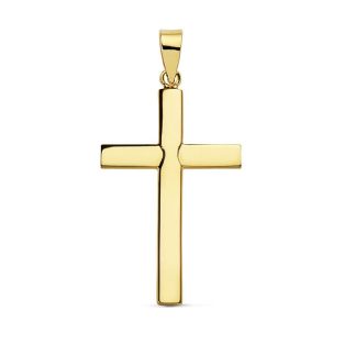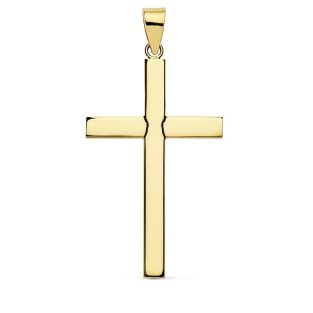 18K CRUZ ORO AMARILLO HUECA LISA 34X22 MM