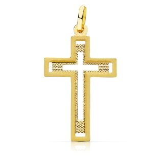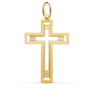 18K CRUZ ORO AMARILLO HUECA MATE Y BRILLO 27X15 MM