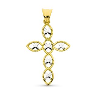 18K CRUZ ORO BICOLOR MATE Y BRILLO 30X19 MM
