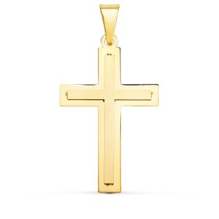 18K CRUZ ORO AMARILLO BRILLO Y MATE SIN CRISTO 32X20 MM