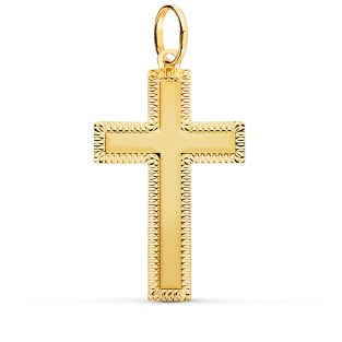 18K CRUZ ORO AMARILLO TALLADA 44X30 MM